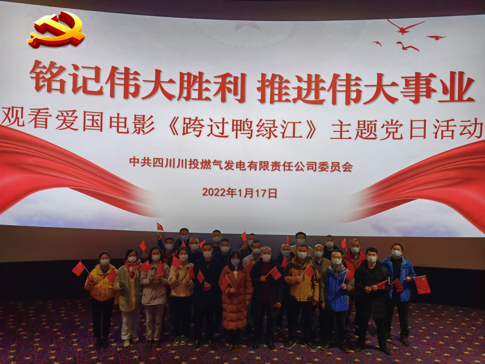 為縱深推進(jìn)黨史學(xué)習(xí)教育,傳承弘揚(yáng)革命精神,進(jìn)一步激發(fā)黨員干部的愛國(guó)熱情。1月17日下午,川投氣電各黨支部組織開展“銘記偉大勝利,推進(jìn)偉大事業(yè)”觀看愛國(guó)電影《跨過鴨綠江》主題黨日活動(dòng)。