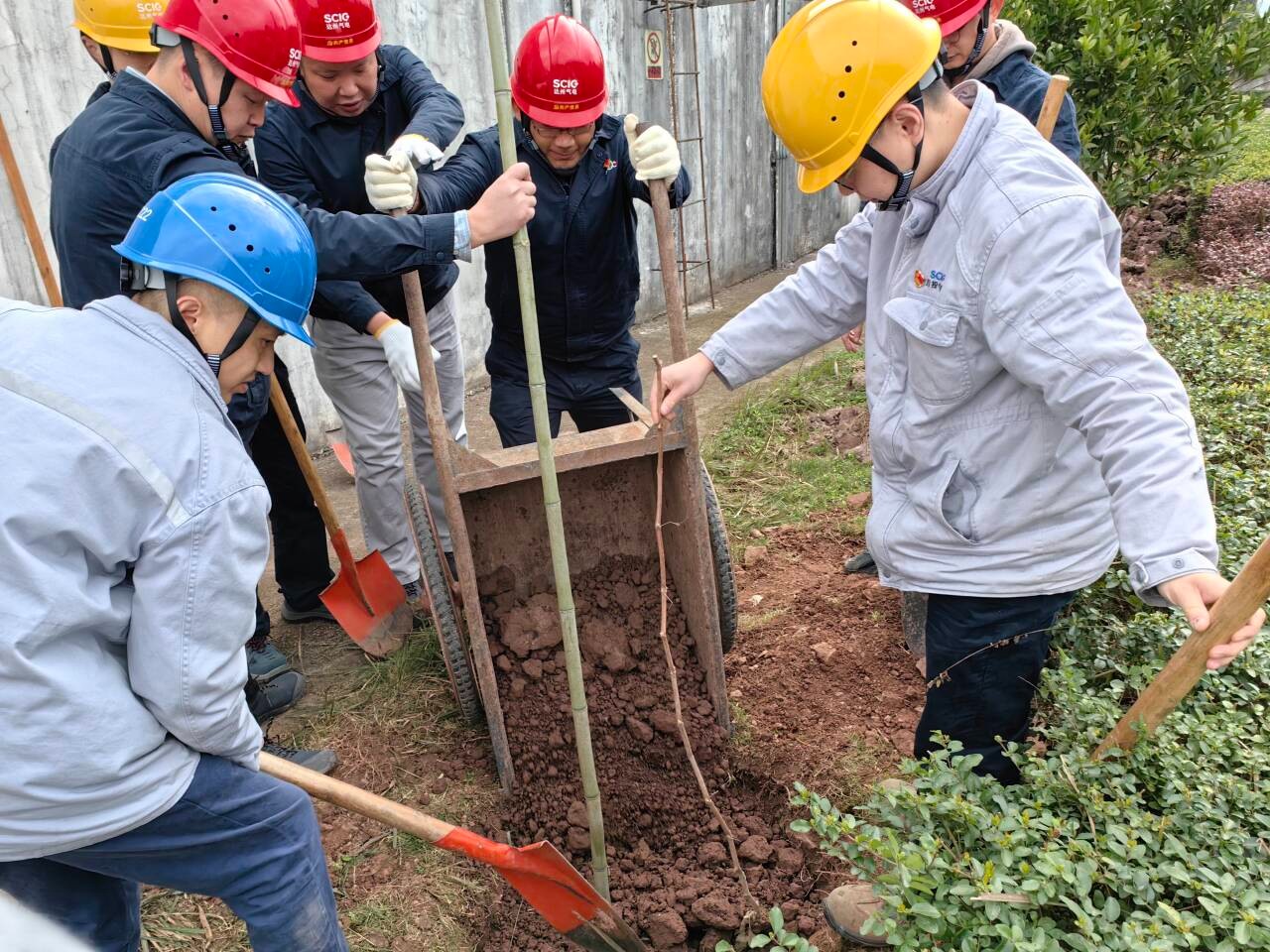 迎著和煦的微風,大家熱情洋溢、干勁十足,在歡聲笑語中一邊討論栽樹技巧,一邊為企業(yè)發(fā)展建言獻策,現(xiàn)場氣氛融洽熱烈。踏著溫潤的泥土,大家分工協(xié)作、配合默契,搬運樹苗、揮鋤挖土、扶苗填坑、揮鍬培土、夯實土層、拎桶澆水,合力栽下一棵棵樹苗,為站內(nèi)增添了新的生機與活力,期待來年開花結(jié)果。